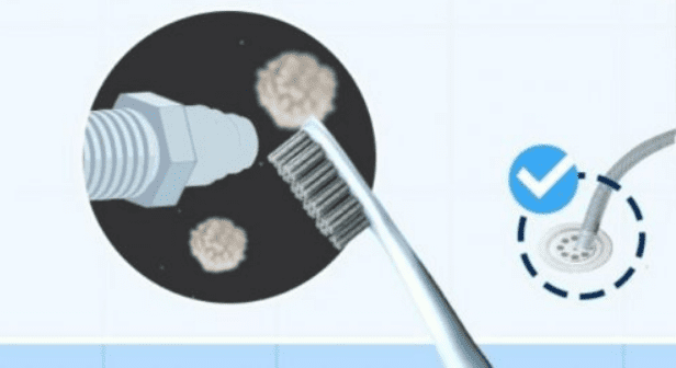 배수 필터는 뚜껑을 잡고 돌려 분리한 후, 칫솔을 이용해 한달에 한 번 이상 닦고, 완전히 건조한 뒤 사용하는 게 좋습니다.