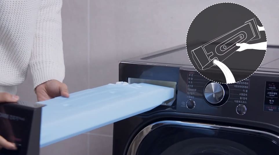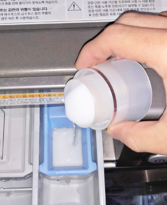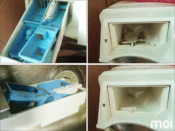 항상 물기가 닿는 세제 칸은 남은 세제 찌꺼기가 눌러 붙어 세균 · 곰팡이가 발생하기 쉽습니다. 따라서 1주일에 한번은 세제 칸을 분리해 청소 솔로 세제와 먼지 찌꺼기를 제거해 주는 게 좋습니다.